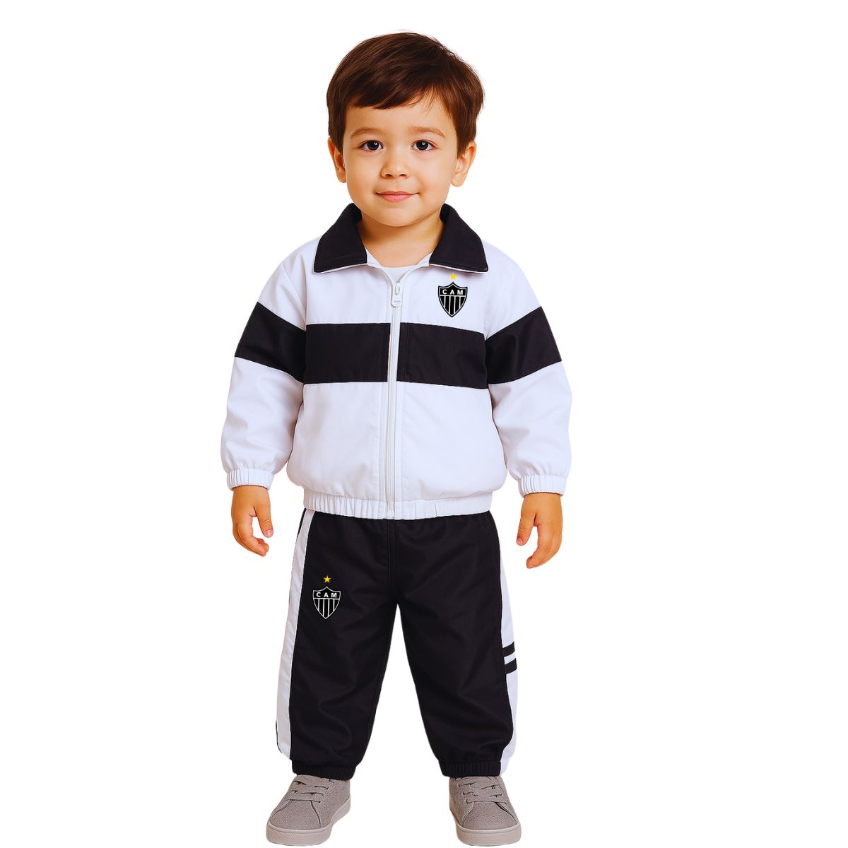 Agasalho infantil do Atlético MG, oficial, licenciado. Composto por uma blusa e uma calça, com escudo e as cores do Atlético. Ideal para vestir os pequenos com as cores do Galo da cabeça aos pés. Com o Agasalho Atlético Infantil, os pequenos estão prontos para a torcida do Galo.