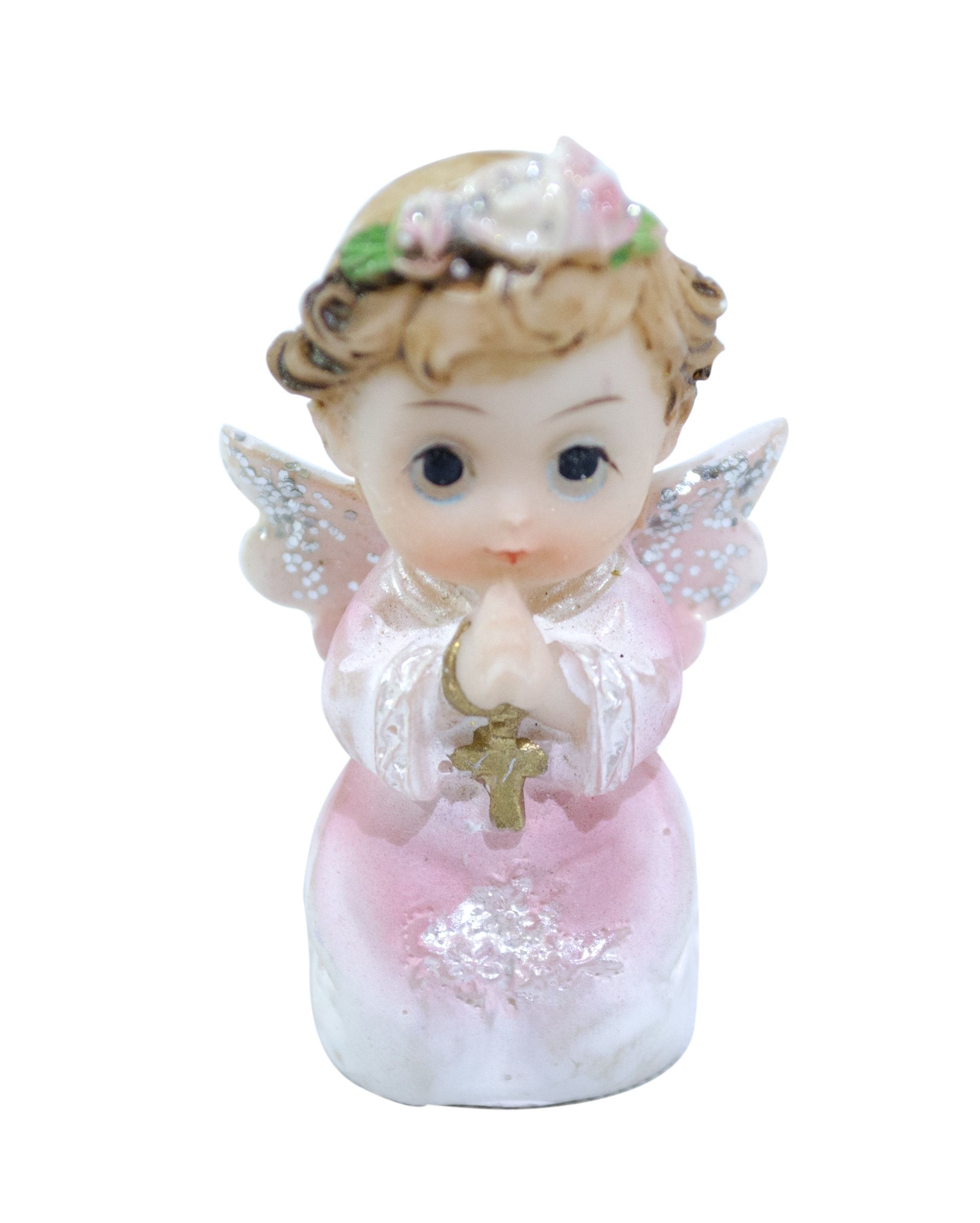 Anjinho Rezando Rosa Enfeite Resina 4cm