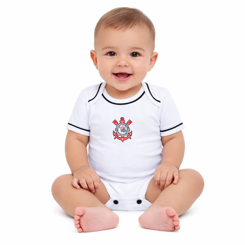 Body Bebê Corinthians Manga Curta Unissex Oficial