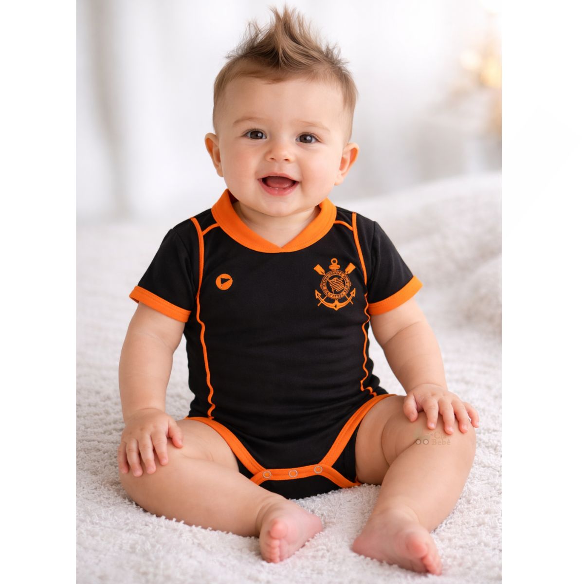 Body Bebê Corinthians Preto Laranja Jogo Torcida Baby