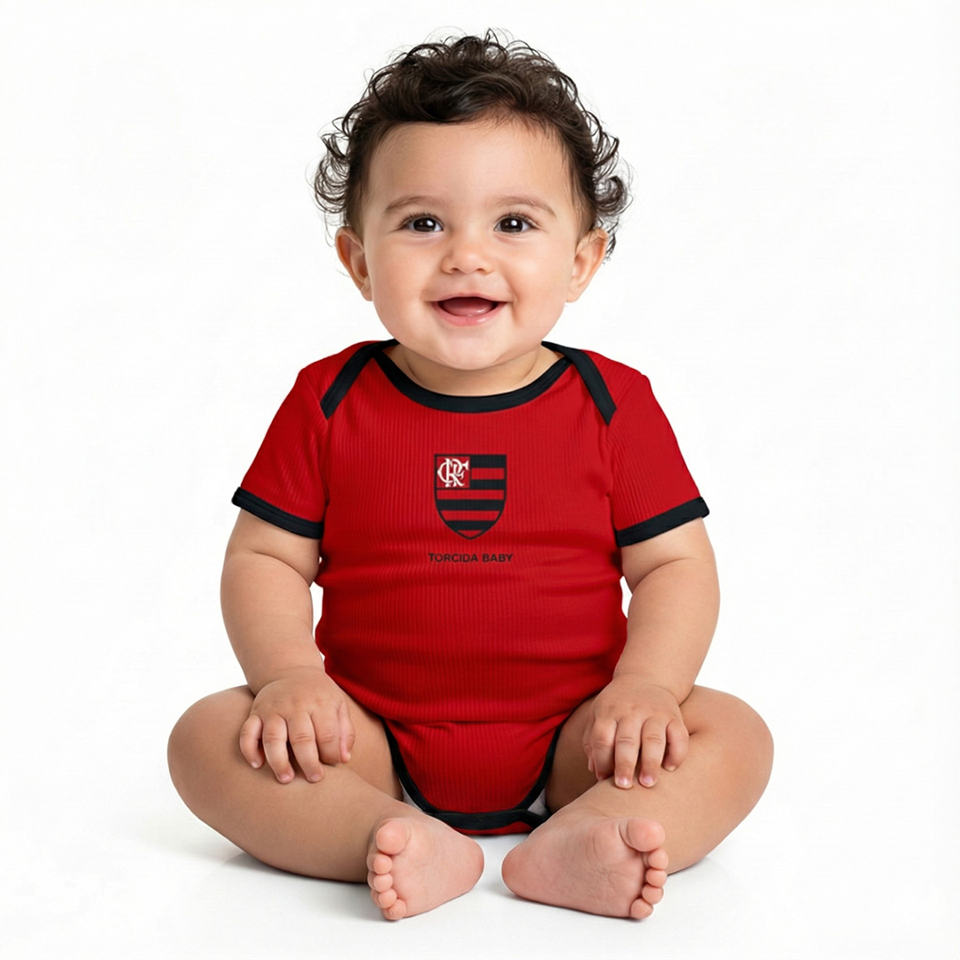 Body Bebê Flamengo Curto Vermelho Oficial - Torcida Baby