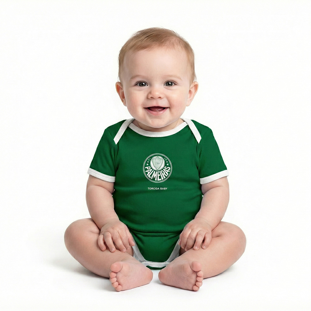 Body manga curta oficial do Palmeiras Verde, ideal para vestir o seu bebê dos pés a cabeça com as cores do Verdão.