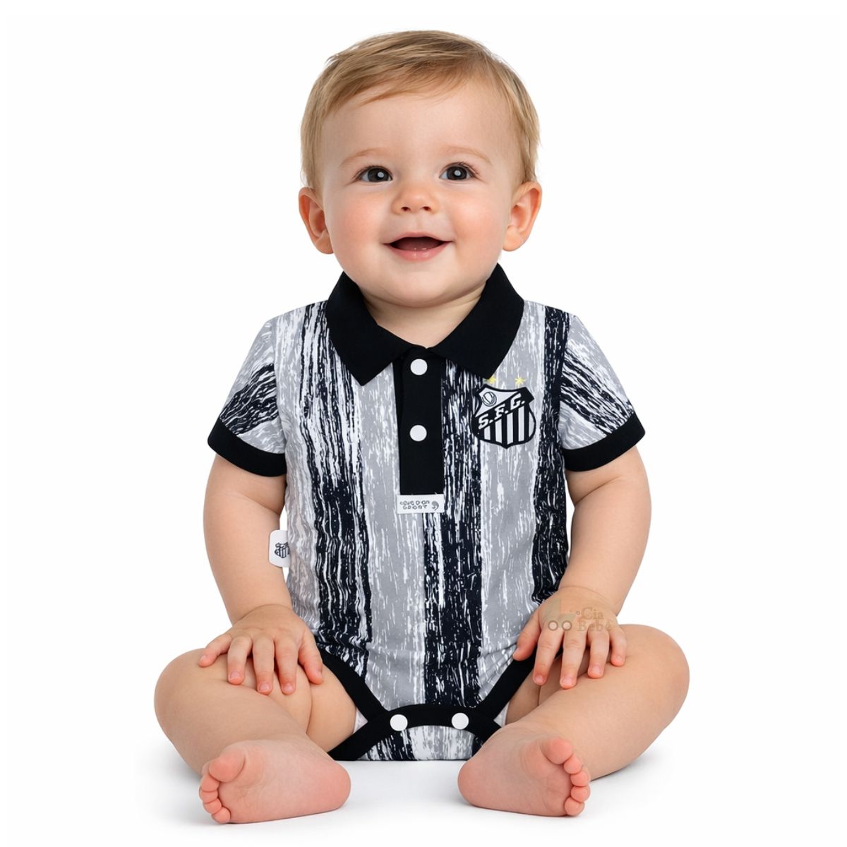 Body Bebê Santos Polo Manga Curta Listrado Oficial