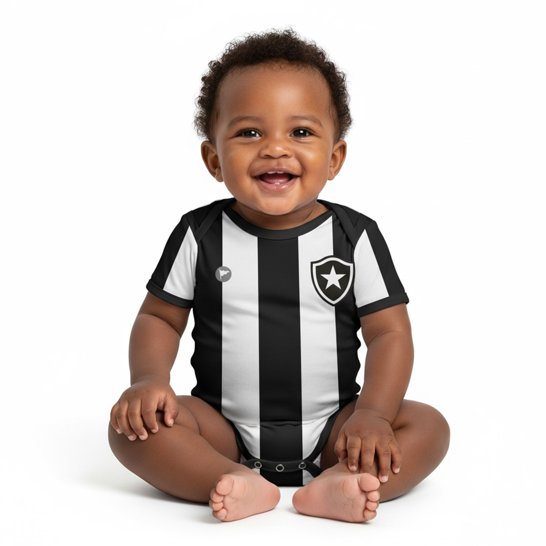 Body manga curta oficial do Botafogo, com proteção UV, ideal para vestir o seu bebê dos pés a cabeça com as cores do Fogão e expressar todo amor pelo Botafogo desde os primeiros dias de vida.