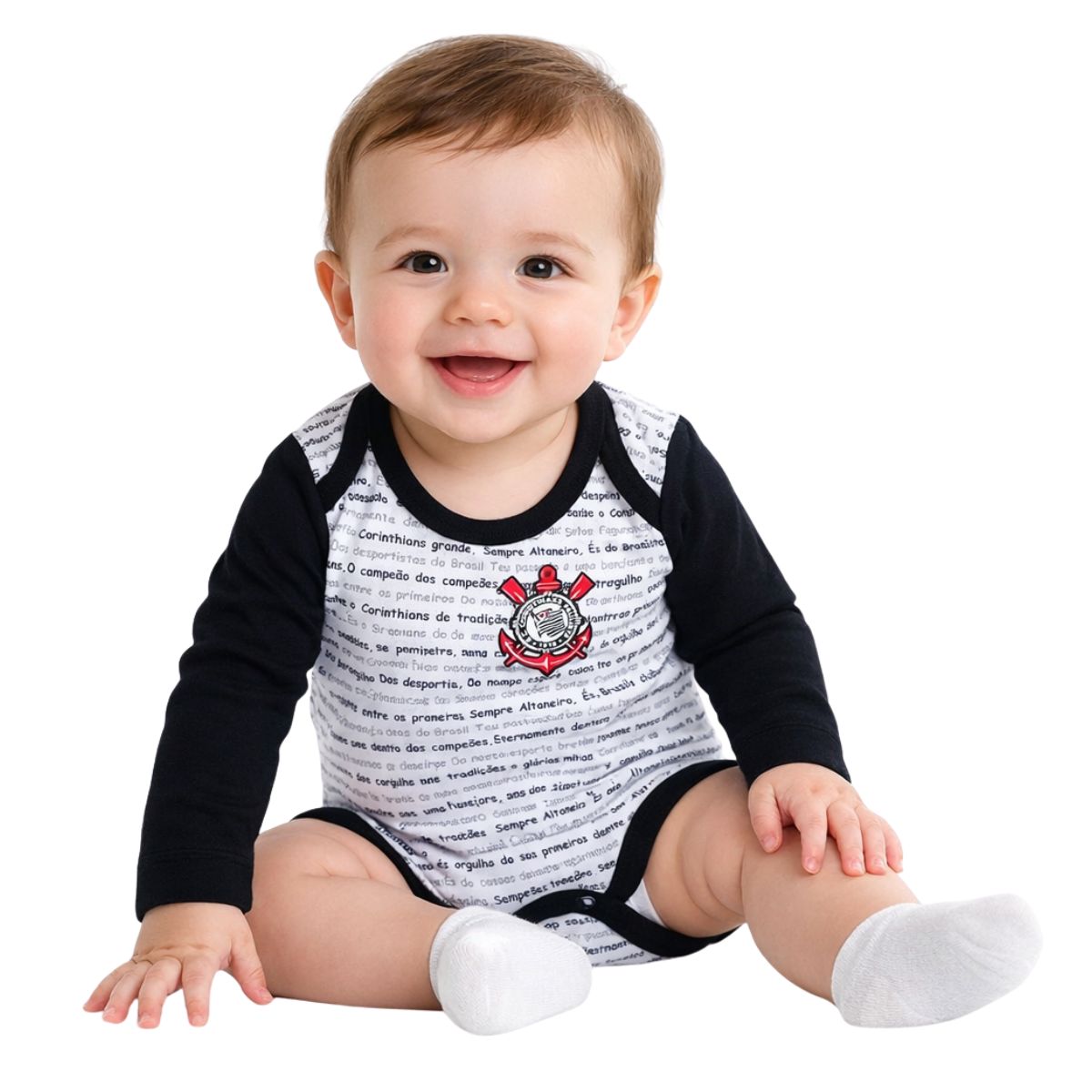 O Body possui uma estampa com o hino do Corinthians. Desenvolvido para os pequenos que são torcedores desde o berço. Com o body Corinthians hino, a nova geração de campeões fica devidamente fardada com as cores do seu time de coração. Garanta o futuro das arquibancadas e vista os mini torcedores com o primeiro dos muitos mantos que ainda virão.
