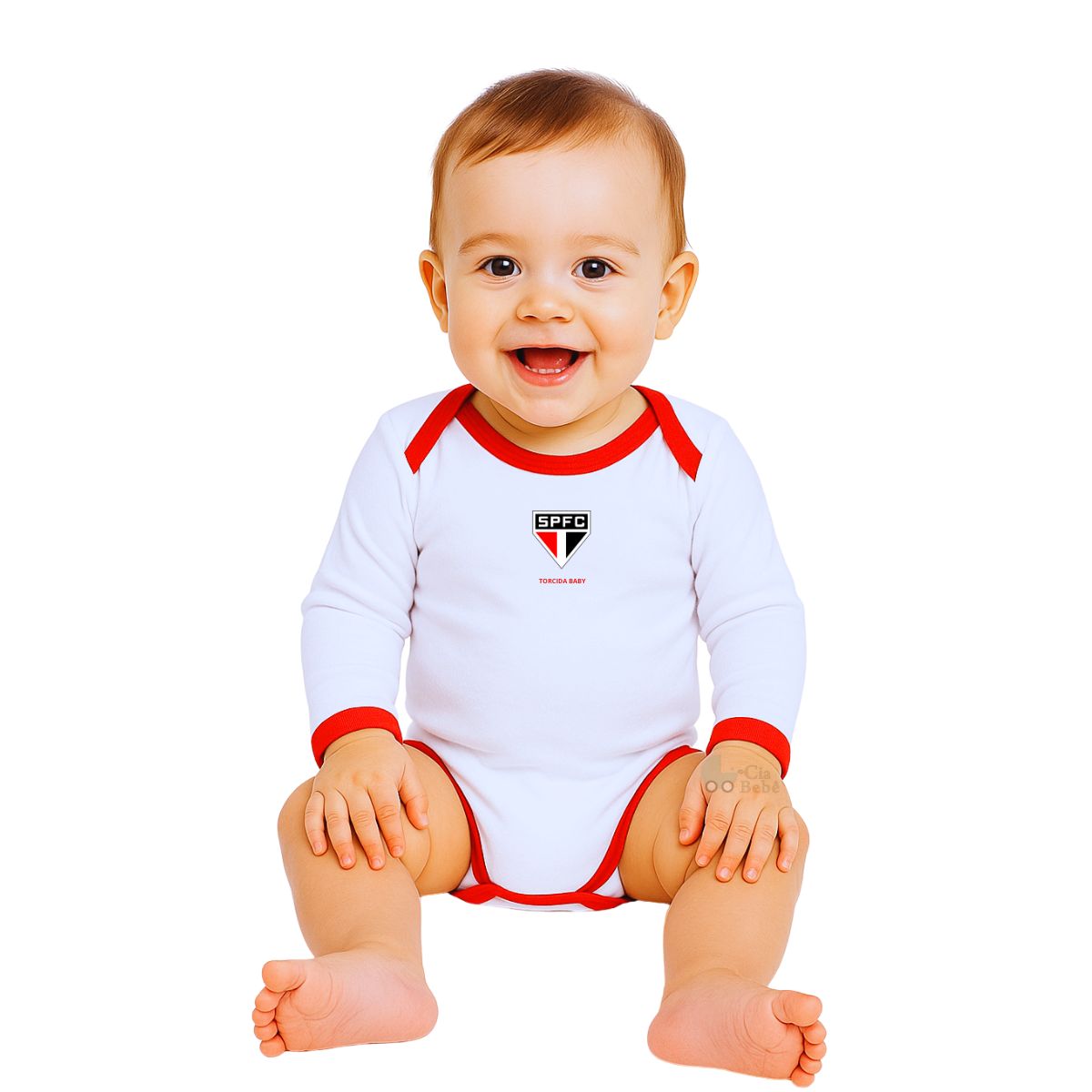 Body manga longa branco oficial do São Paulo, ideal para vestir o seu bebê dos pés a cabeça com as cores do Tricolor, nos dias mais frios.