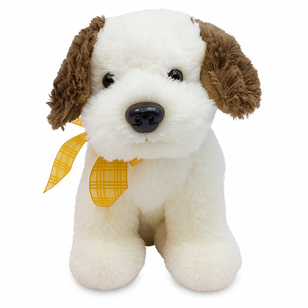Cachorro de Pelúcia Branco e Marrom Com Laço Sentado 24cm