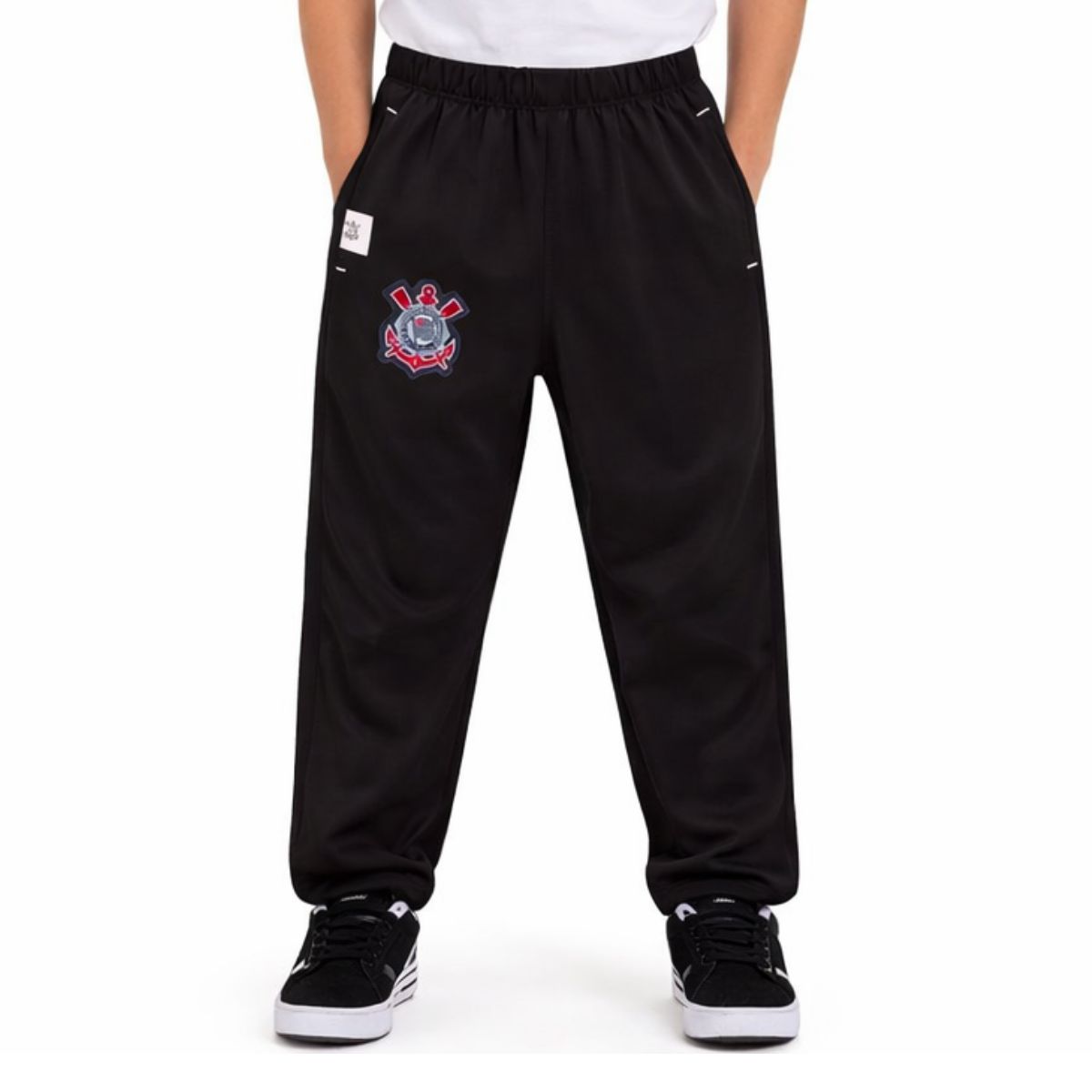 Calça Oficial do Corinthians, com escudo e as cores do Corinthians. Ideal para vestir os pequenos com as cores do Timão da cabeça aos pés nos dias de frio. Com a calça oficial do Corinthians Infantil, os pequenos estarão prontos para a torcida desde pequeno.