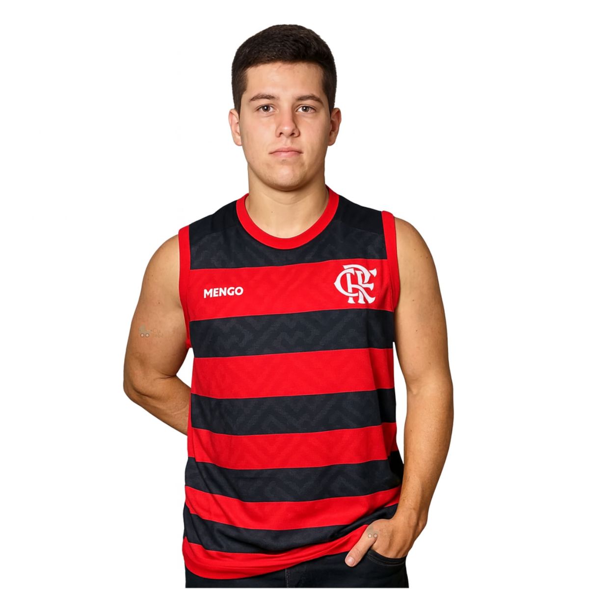 Camisa Flamengo regata confeccionada em tecido poliéster, leve e confortável, ideal para o dia a dia ou para torcer com estilo.