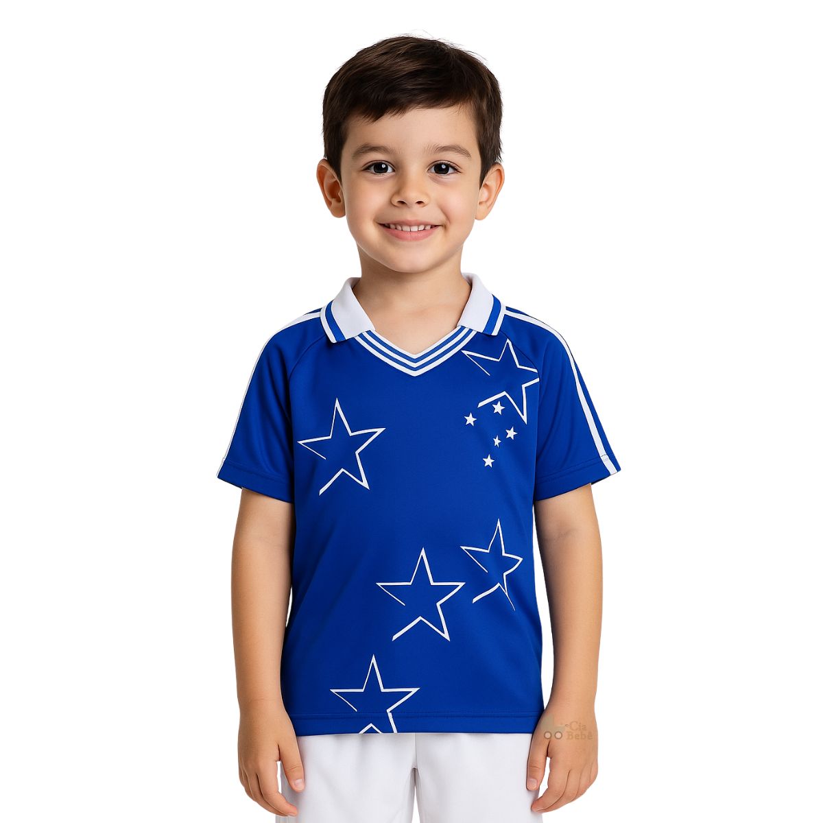 A camisa infantil do Cruzeiro é confeccionada em tecido 100% poliéster, garantindo leveza, durabilidade e secagem rápida — perfeita para o dia a dia ou para vibrar nas partidas do time do coração.