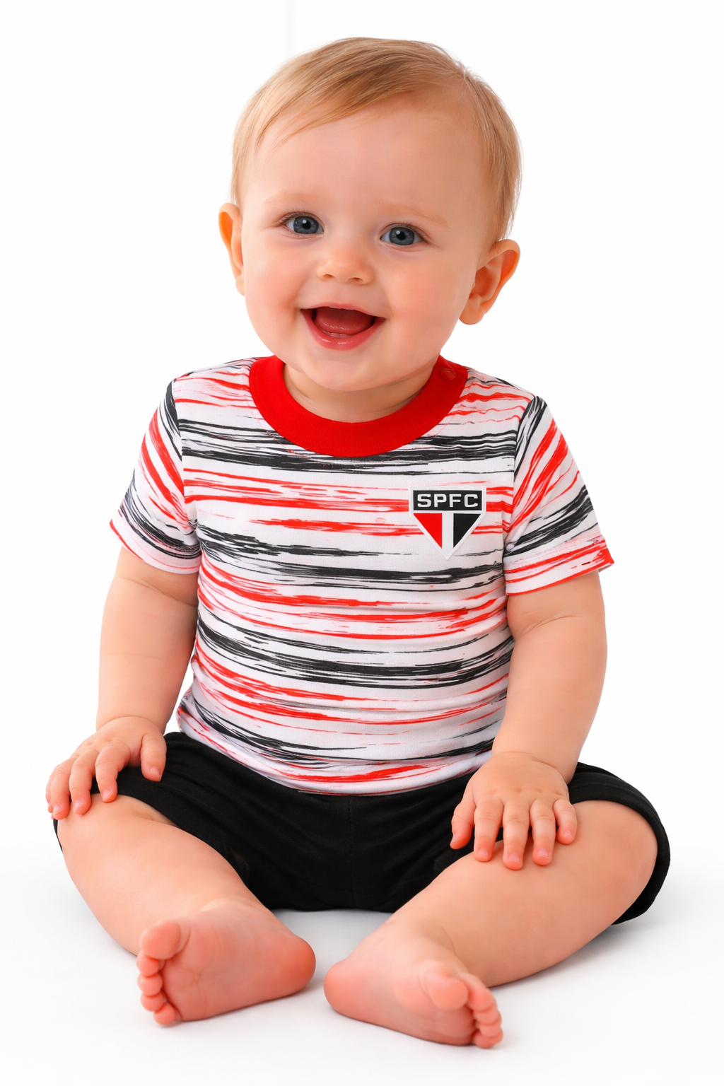 Camiseta Bebê São Paulo Listras Tricolor Oficial