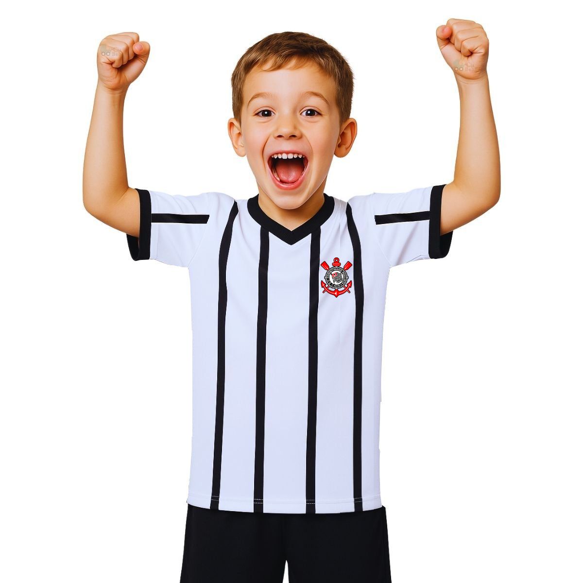 Camiseta Infantil Corinthians Branca Listras Oficial