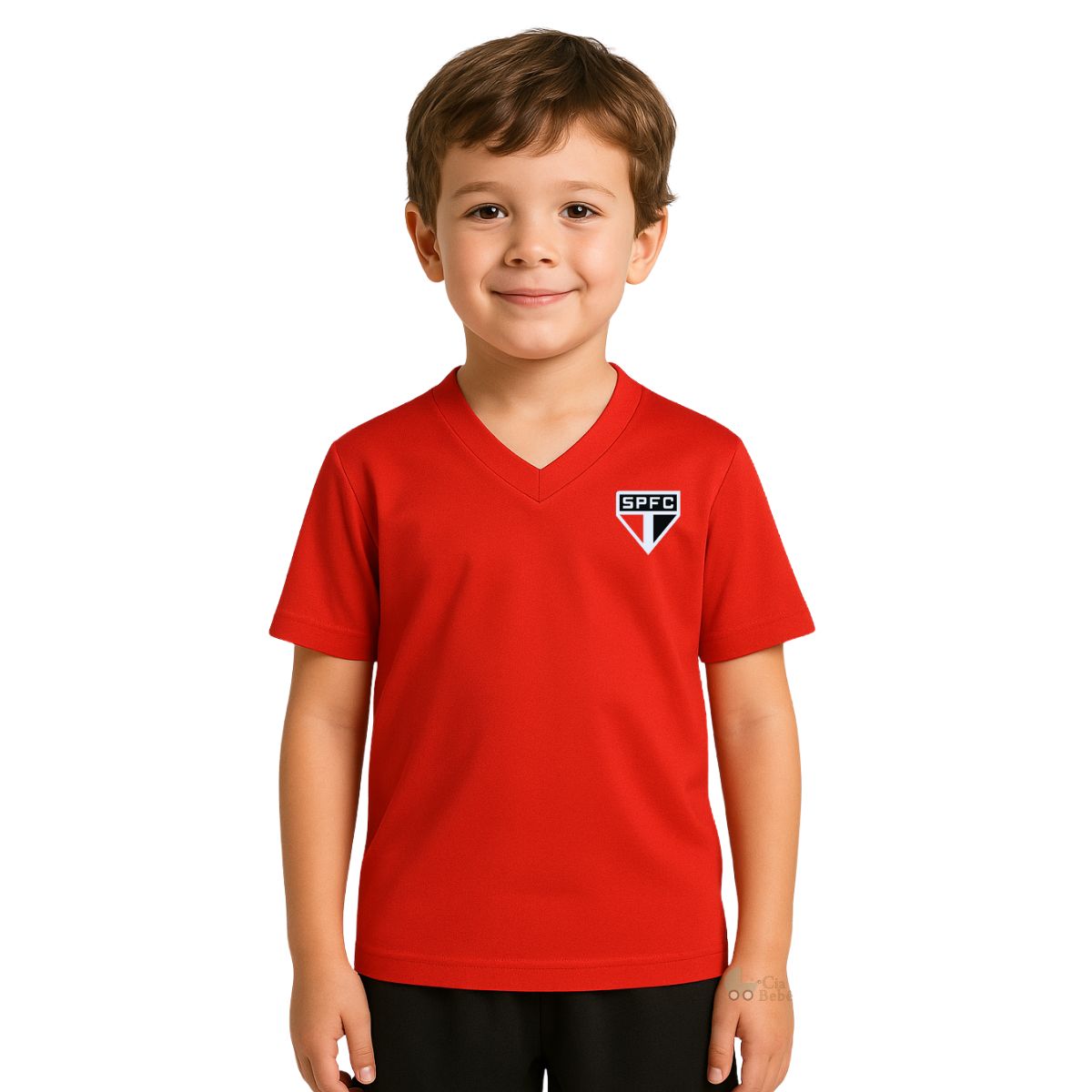Camiseta Infantil São Paulo Vermelha Gola V Oficial