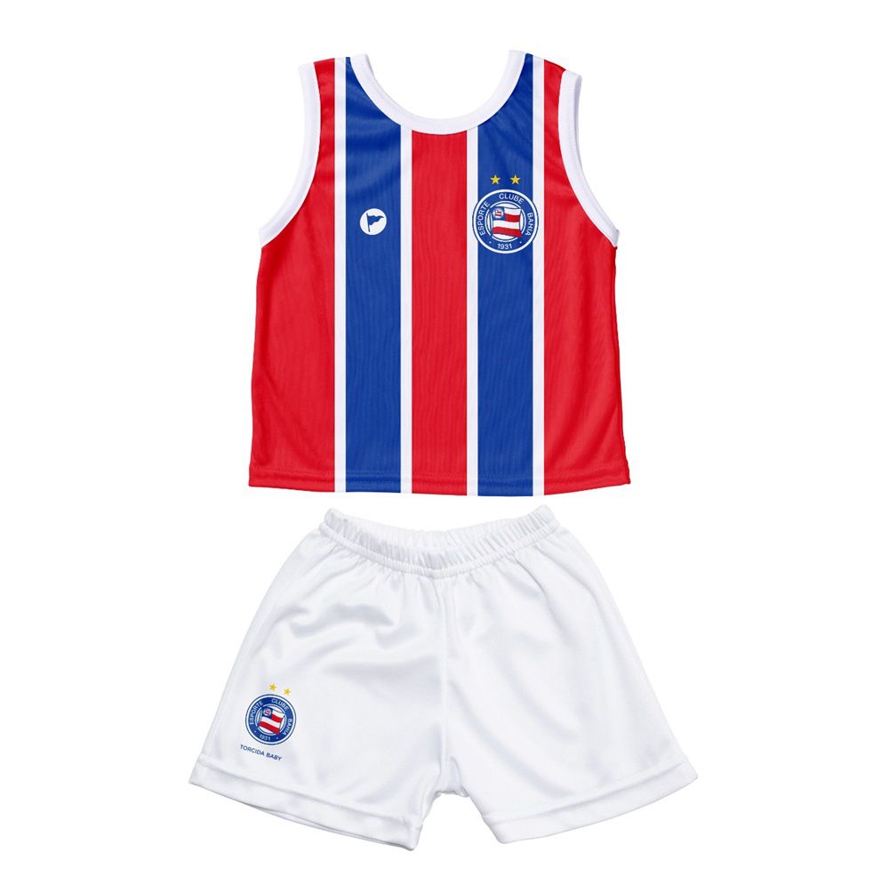 Kit composto por uma Regata e um shorts, com esse lindo kit do Bahia você poderá vestir o seu bebê dos pés a cabeça, com as cores do Bahia. Mais um produto oficial, licenciado da Torcida Baby.