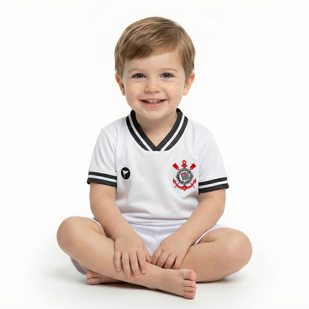 Conjunto Bebê Corinthians Uniforme Branco - Torcida Baby