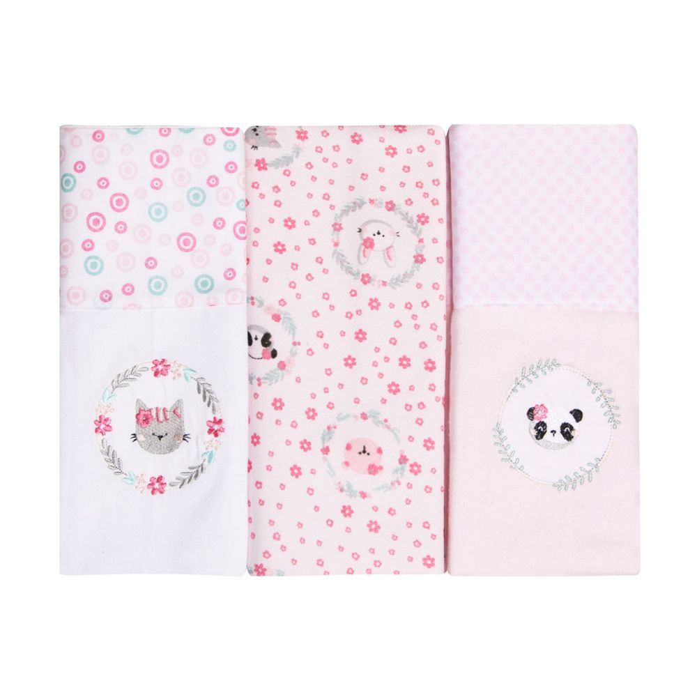 Cueiro Flanelado Com 3 Pçs Animais Rosa 80cm X 80cm Papi