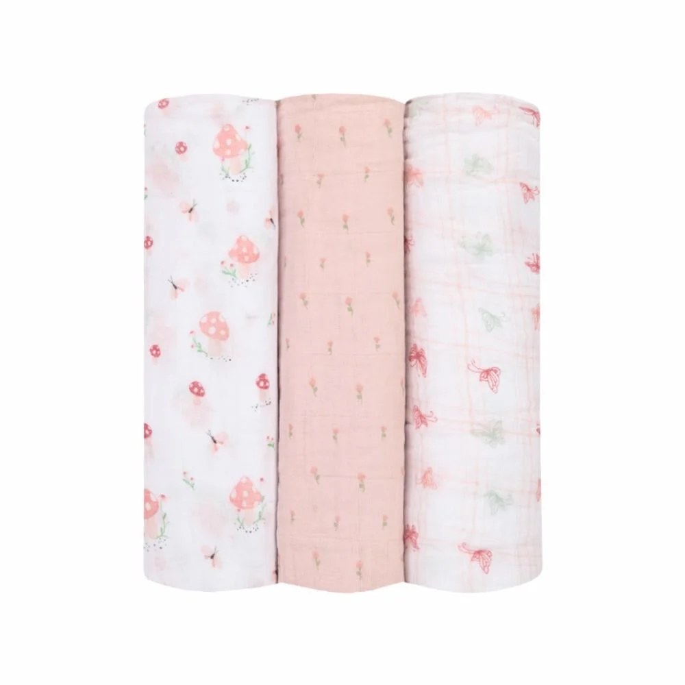 Cueiro Swaddle Soft Com 3 Pçs Cogumelo 1,20X1,20m