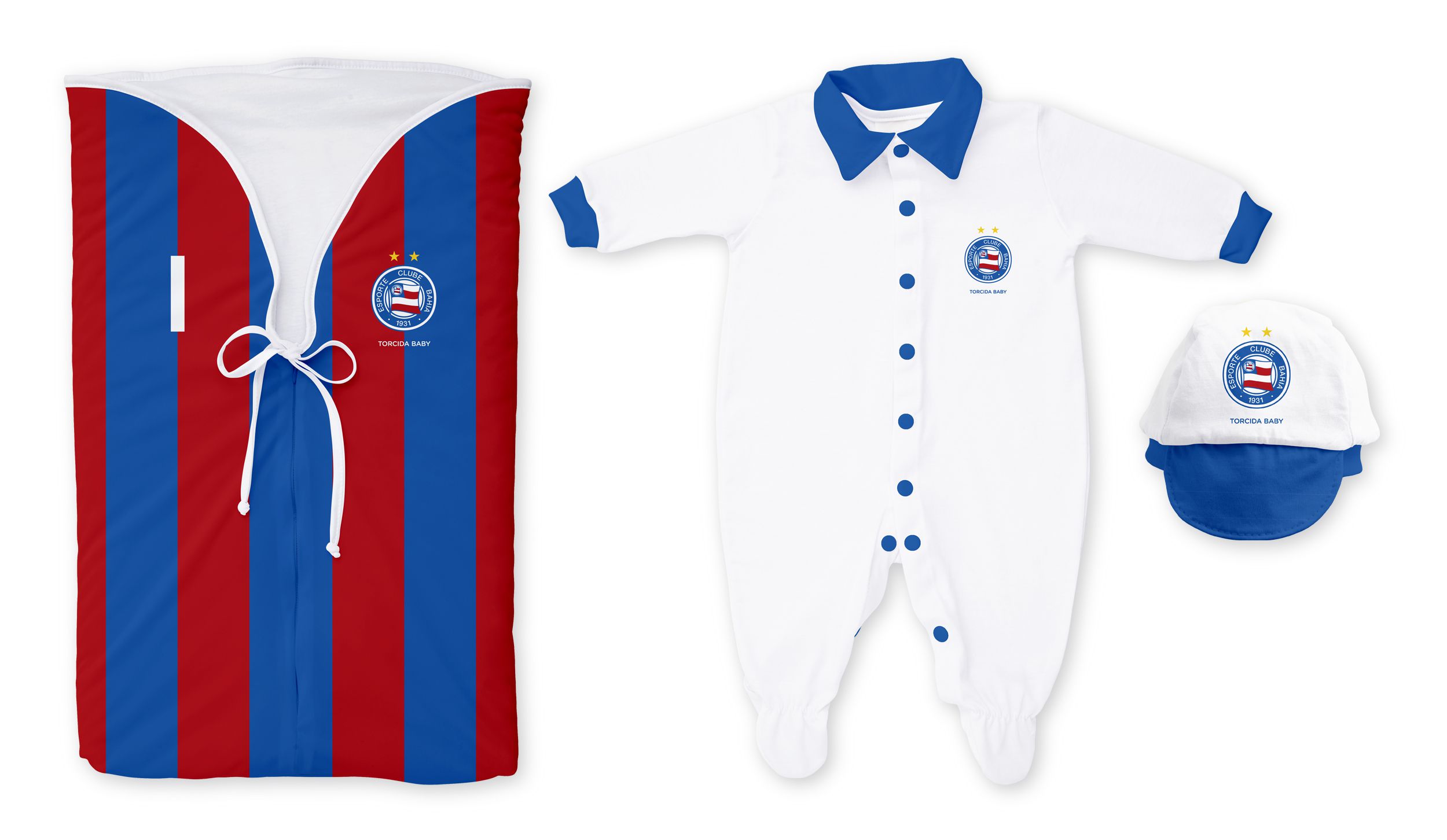 O Kit Maternidade do Bahia foi desenvolvido para os pequenos que são torcedores desde o berço. Composto por um macacão, um Saco de Dormir e um boné, a nova geração de campeões fica devidamente fardada com as cores do Bahia. Garanta o futuro da torcida do Tricolor e vista os mini torcedores com o primeiro dos muitos mantos que ainda virão.