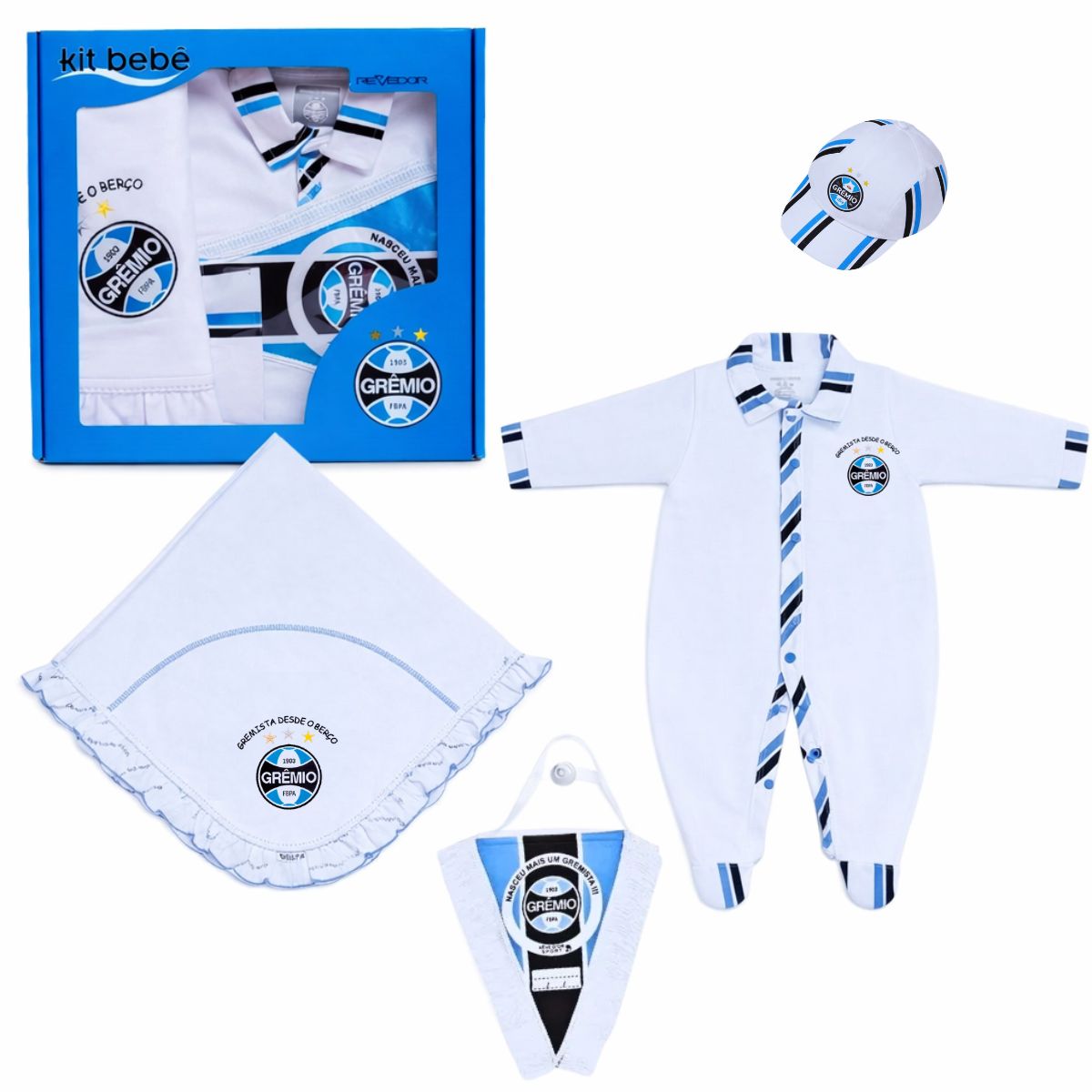 O Kit Maternidade Grêmio é perfeito para os pequenos torcedores que já nascem apaixonados pelo Tricolor. Desenvolvido com muito carinho, esse conjunto une conforto, qualidade e um design especial para os primeiros dias do bebê.