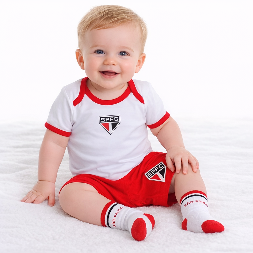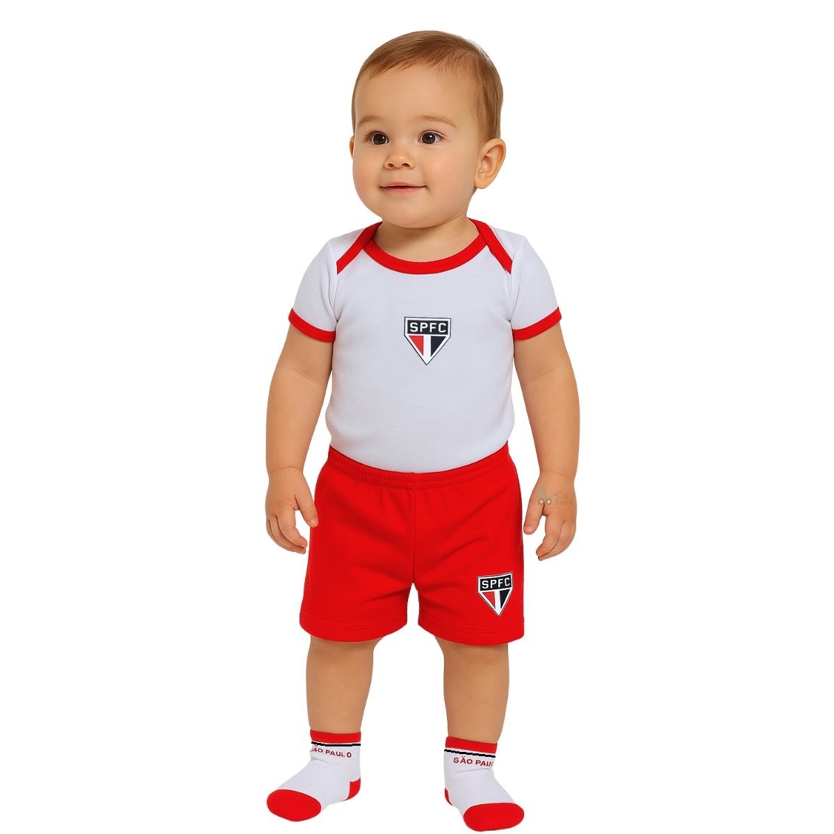 Kit Conjunto Bebê São Paulo Com Body Shorts e Meia Oficial