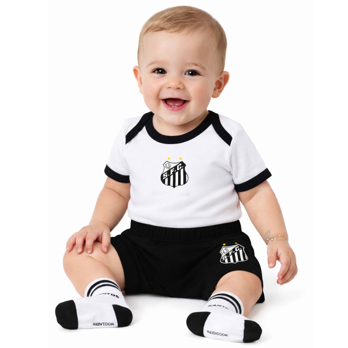 Uniforme Bebê Santos Conjunto Body Shorts E Meia Oficial