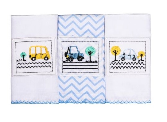 Kit Paninho De Boca Bordado Com 3 Pçs Carrinhos Papi
