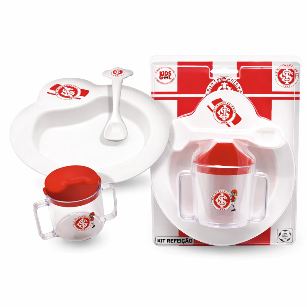 O kit refeição educativo Kids Gol foi desenvolvido para auxiliar a criança a alimentar-se sozinha.