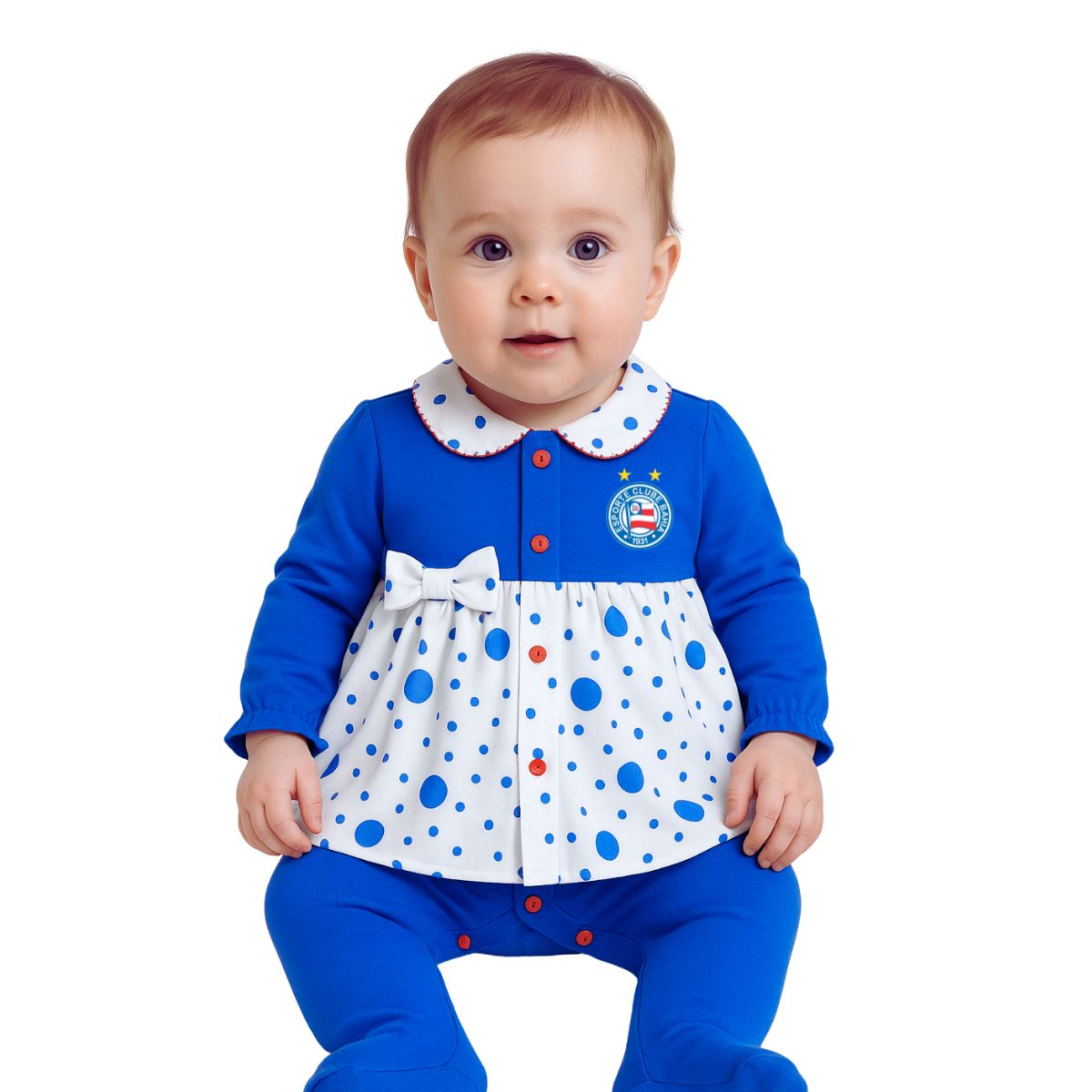 O Macacão Bebê Bahia é perfeito para expressar a paixão pelo time da cabeça aos pés. Confeccionado em tecido 100% algodão, tem toque suave com a pele da criançada e proporciona extrema sensação de conforto. Um produto que não pode faltar na coleção dos pequenos e já apaixonados torcedores.