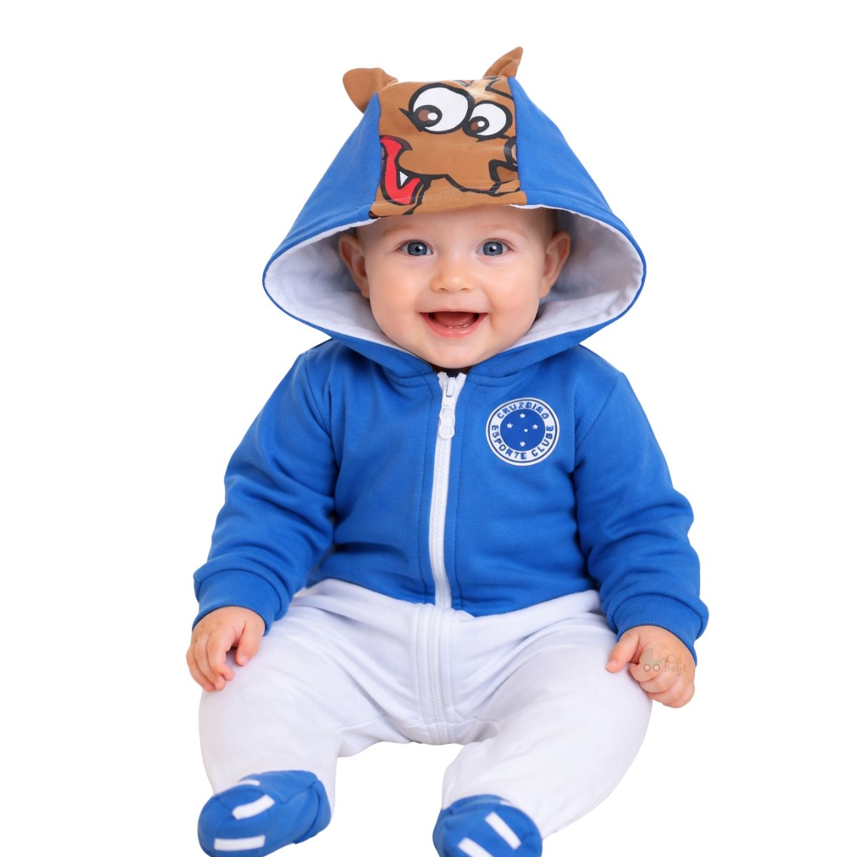 Macacão bebê mascote oficial do Cruzeiro, possui estampa do mascote com escudo do Cruzeiro. Uma ótima opção para deixar o seu bebê caracterizado com as cores do Cruzeiro, com muita fofura.
