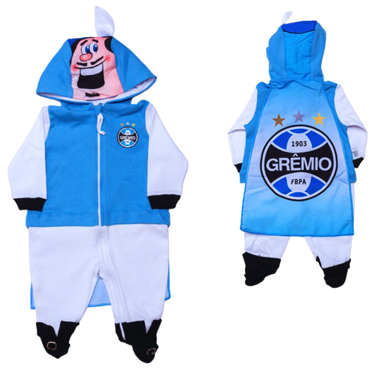 Macacão bebê mascote oficial do Grêmio, possui estampa do mascote com escudo do Grêmio. Uma ótima opção para deixar o seu bebê caracterizado com as cores do Imortal, com muita fofura.