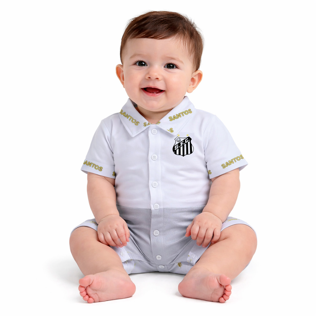 Macacão Bebê Santos Oxford Manga Curta Oficial