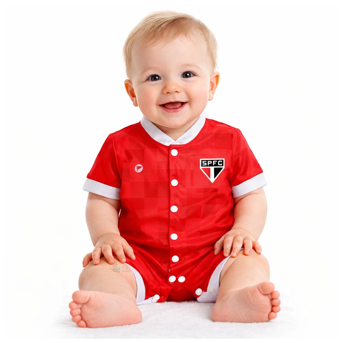 Macacão Bebê São Paulo Vermelho Manga Curta Torcida Baby