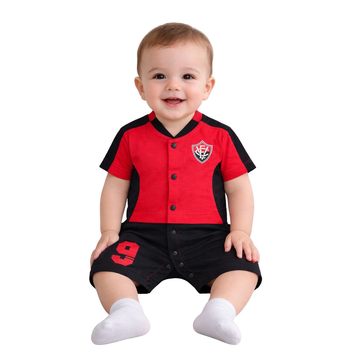 O Macacão Vitória Curto Artilheiro é perfeito para expressar esta paixão pelo Vitória da cabeça aos pés. Confeccionado em malha 100% Algodão, tem toque suave com a pele da criançada e proporciona extrema sensação de conforto. Um produto que não pode faltar na coleção dos pequenos e já apaixonados torcedores.