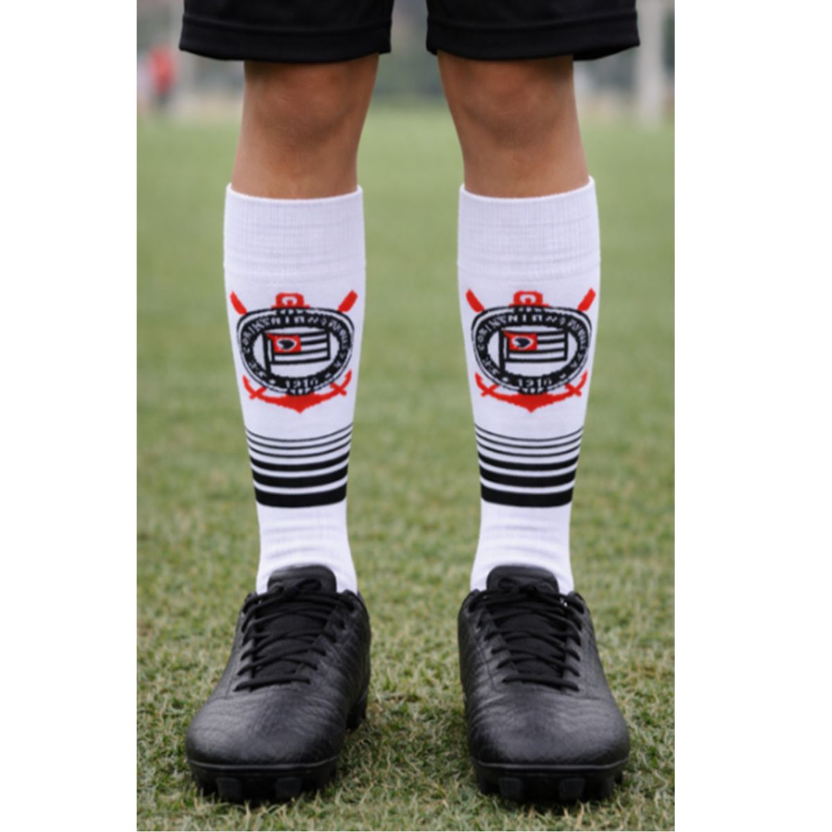 Meião Corinthians Infantil Juvenil Branco e Preto Rikam Oficial
