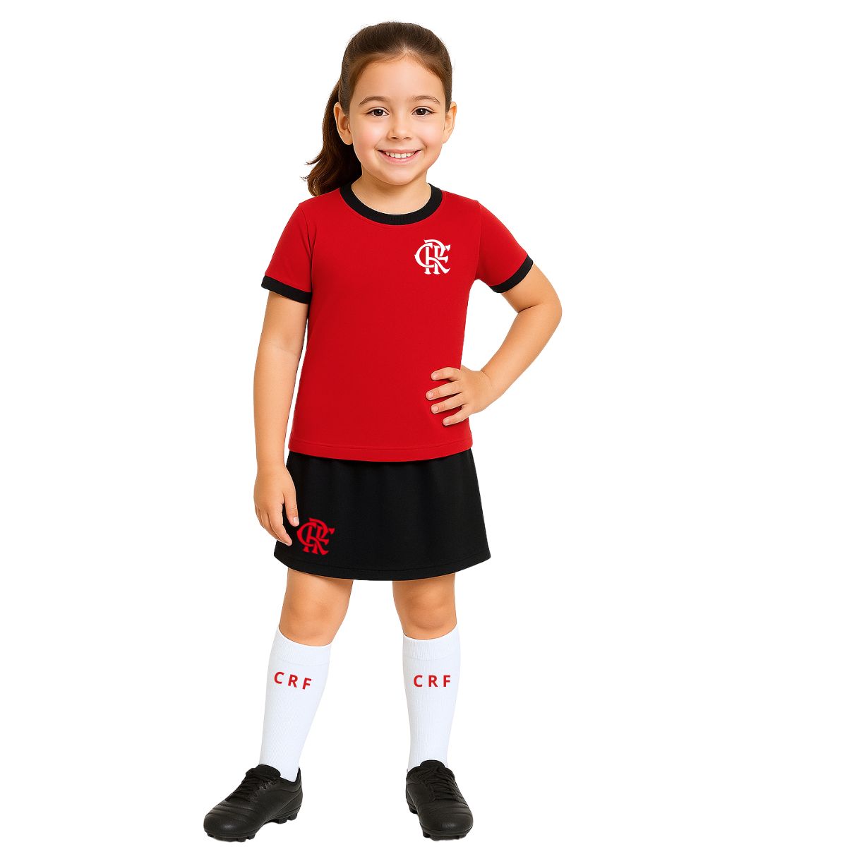 O Uniforme Infantil Flamengo Artilheira Feminino Oficial, é a combinação que faltava para que as pequenas realizarem o sonho de vestir, da cabeça aos pés, a paixão pelo seu time. Conjunto infantil com camiseta shorts e meião feminino.
