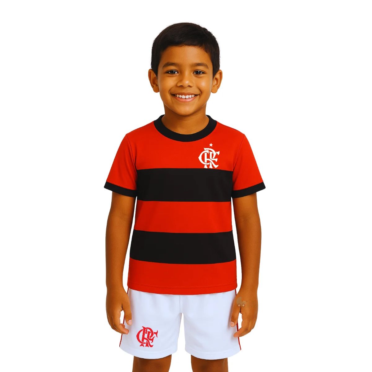 Uniforme Infantil Flamengo Listrado Shorts Branco Oficial