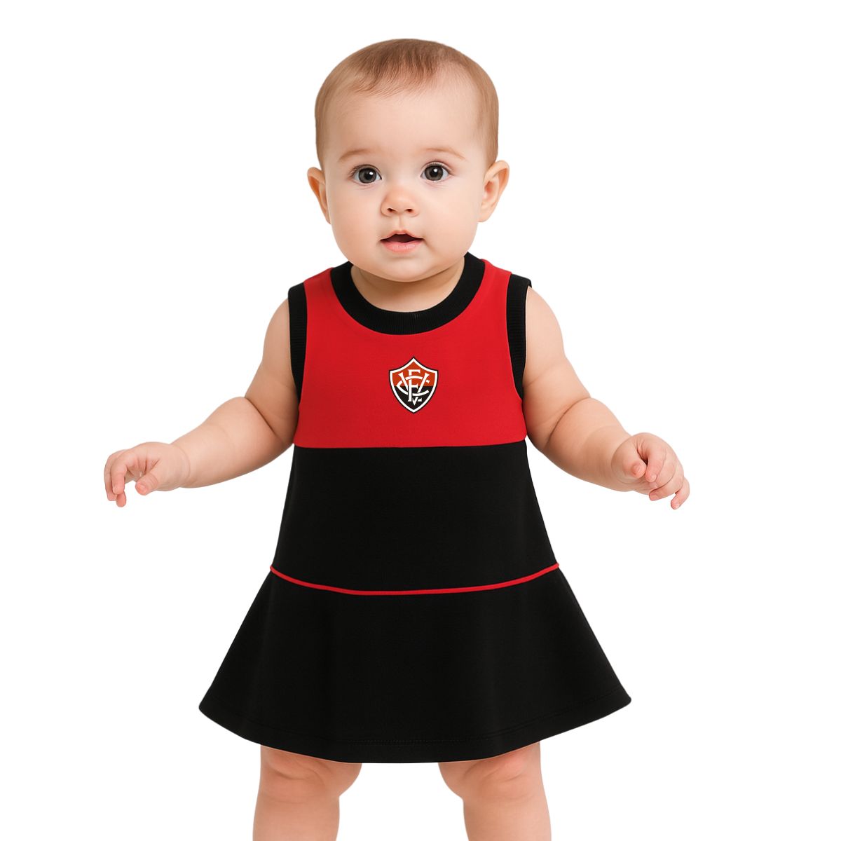 O Vestido do Vitória foi desenvolvido para os pequenos que são torcedores desde o berço. Com esse vestido a nova geração de campeões fica devidamente fardada com as cores do seu time de coração. Garanta o futuro das arquibancadas e vista os mini torcedores com o primeiro dos muitos mantos que ainda virão.