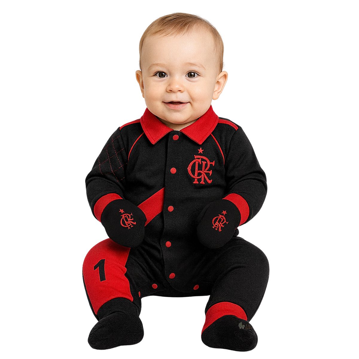 Macacão Bebê Goleiro Com Luvas Flamengo Rubro Negro Oficial